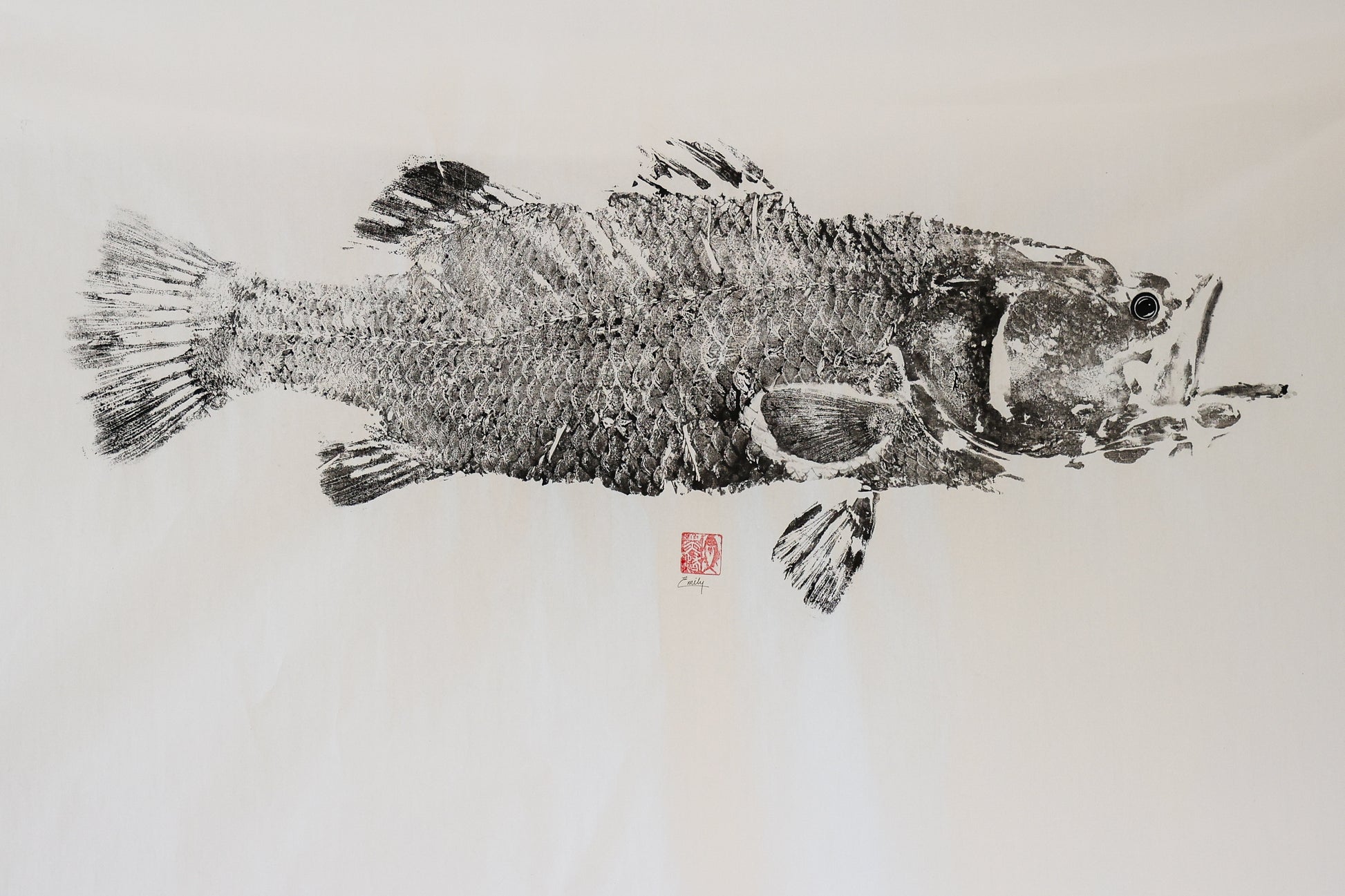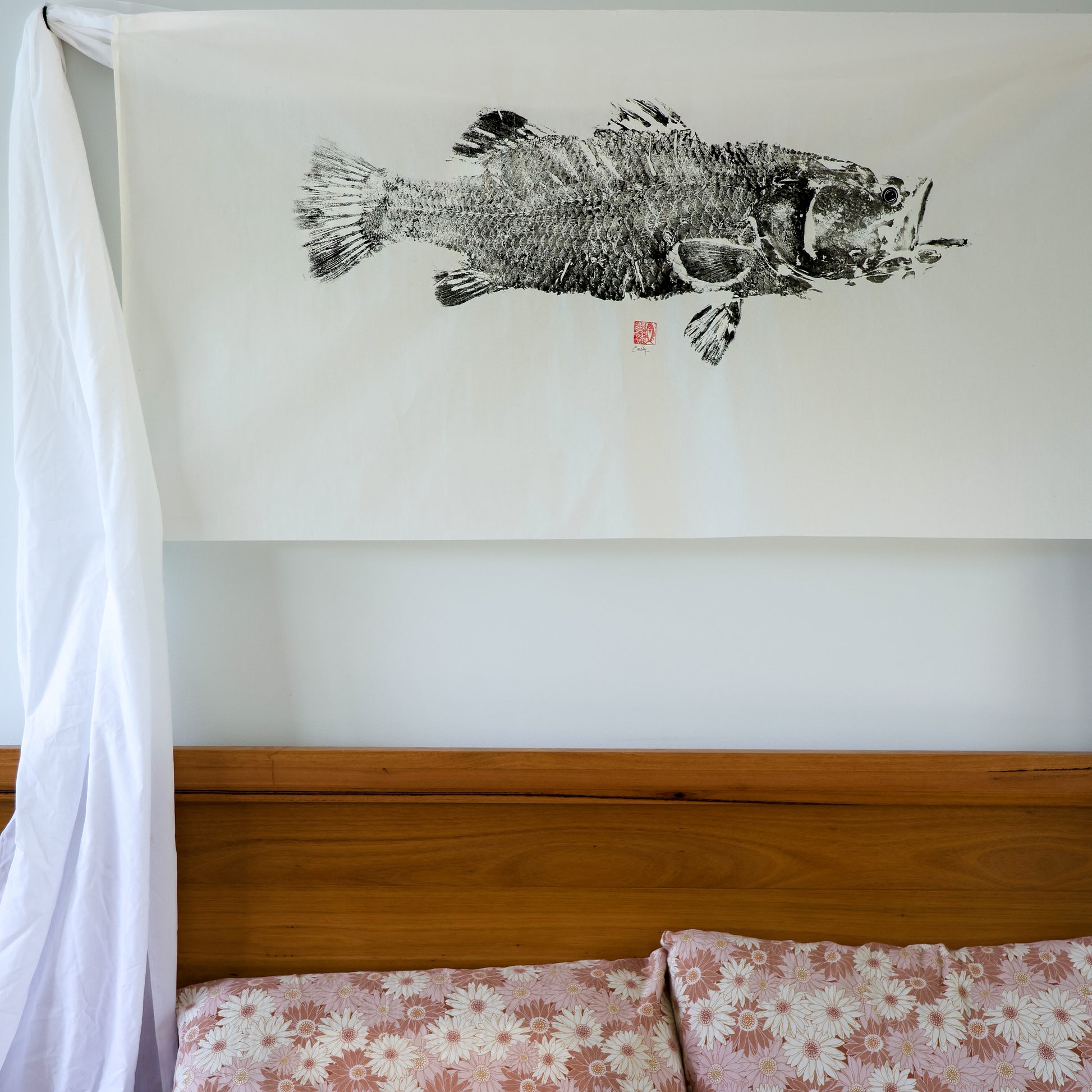 84cm Barramundi caught during the 2025 build-up in Darwin. Printed on rice paper with sumi ink.
