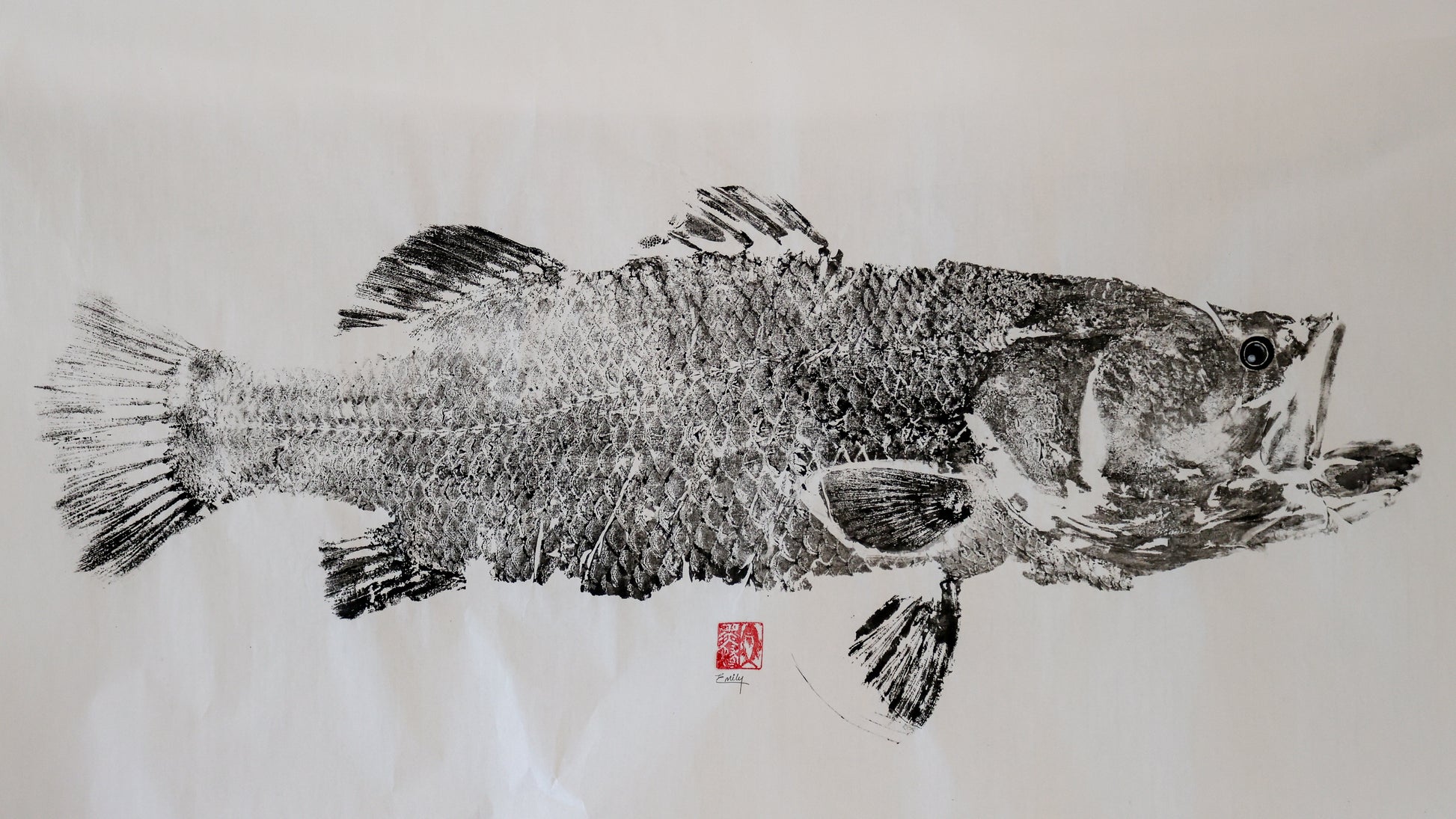 84cm Barramundi caught during the 2025 build-up in Darwin. Printed on rice paper with sumi ink.