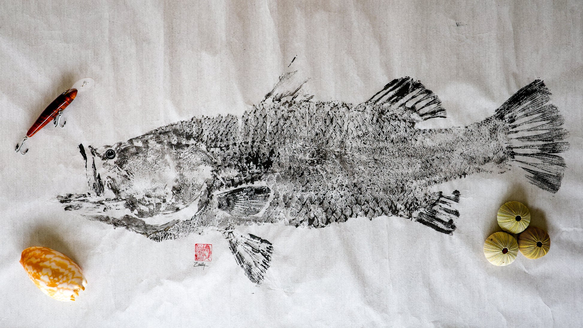 84cm Barramundi caught during the 2025 build-up in Darwin. Printed on rice paper with sumi ink.